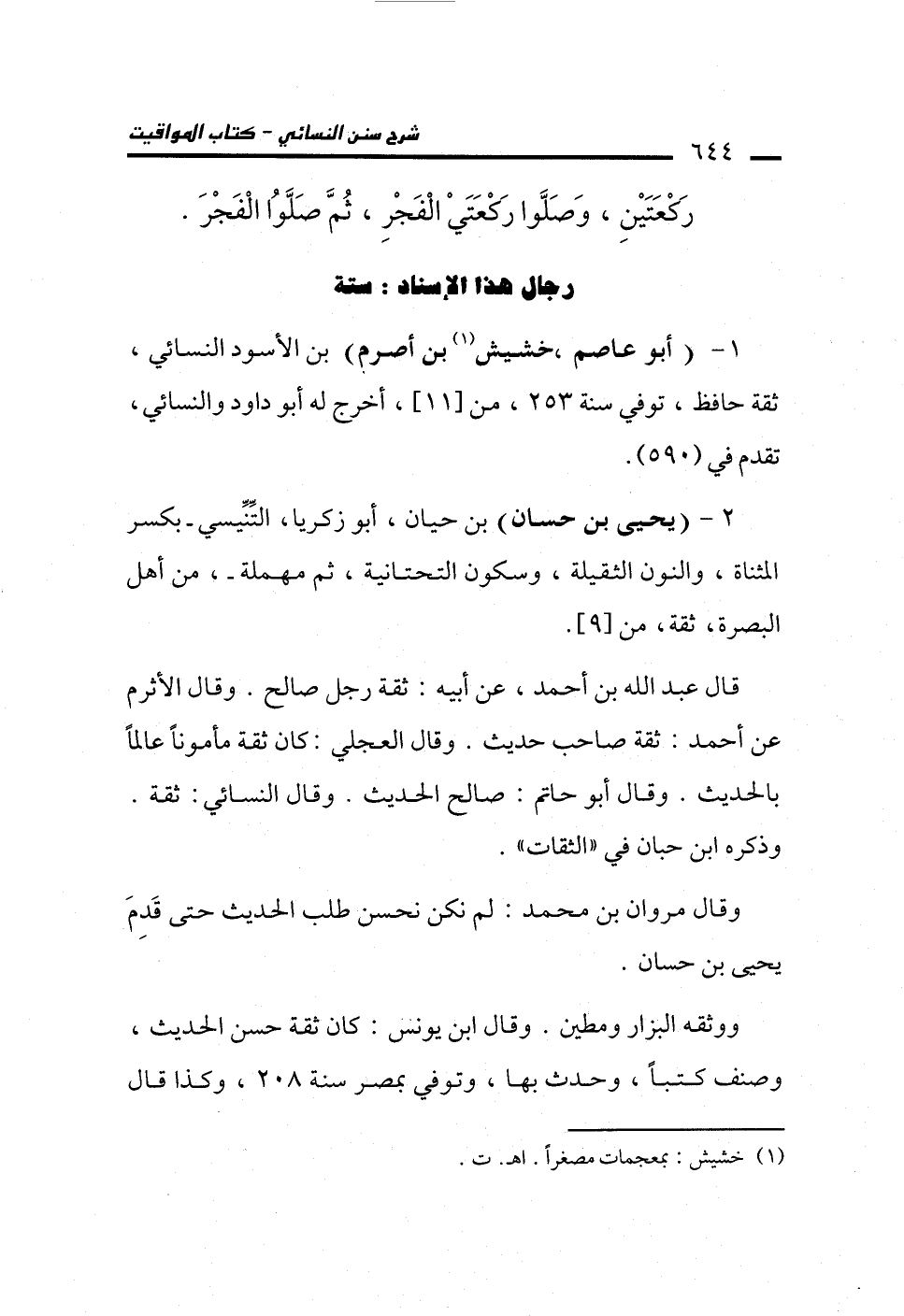 1 - (أبو عاصم، خشيش (¬1) بن أصرم) بن الأسود النسائي، ثقة حافظ، توفي سنة 253، من [11]، أخرج له أبو داود والنسائي، تقدم في (590).