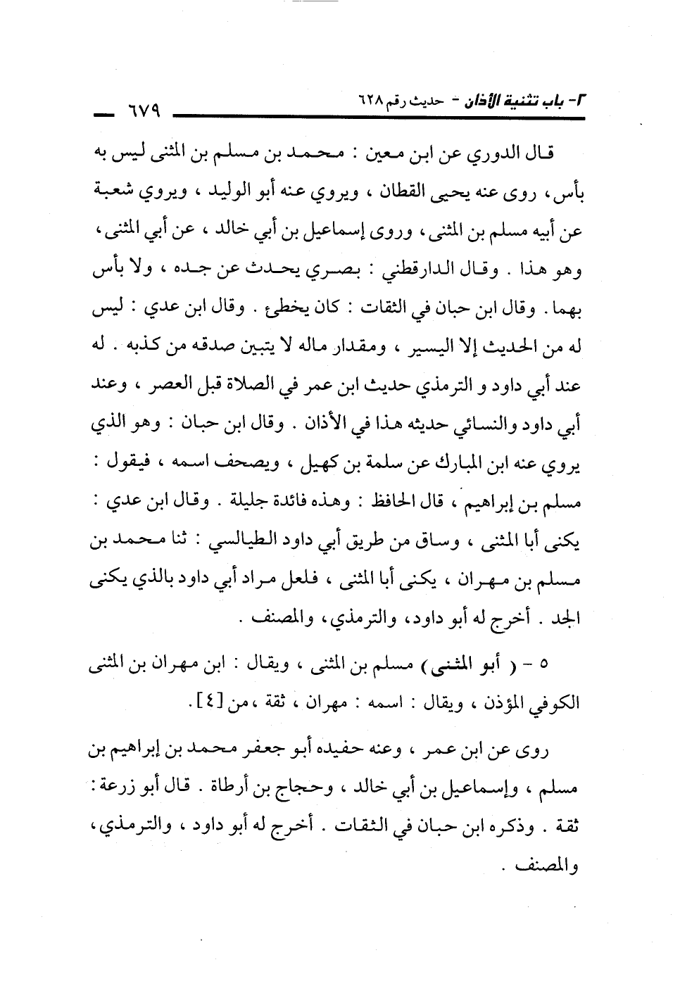 5 - (أبو المثنى) مسلم بن المثنى، ويقال: ابن مهران بن المثنى الكوفي المؤذن، ويقال: اسمه: مهران، ثقة، من [4].