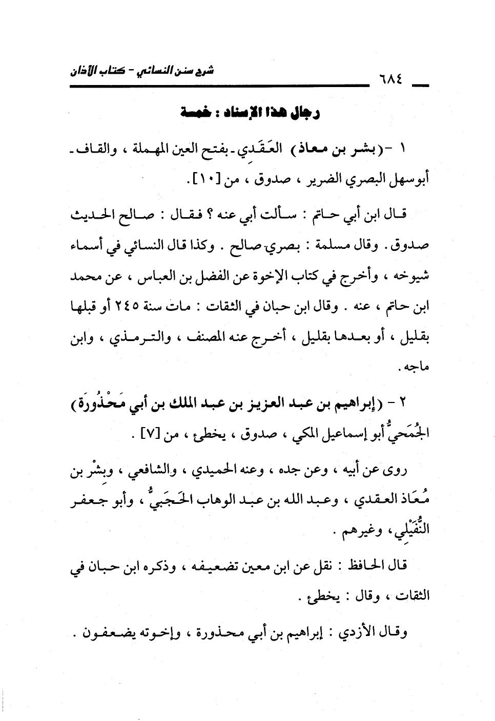 1 - (بشر بن معاذ) العَقَدِي -بفتح العين المهملة، والقاف- أبو سهل البصري الضرير، صدوق، من [10].