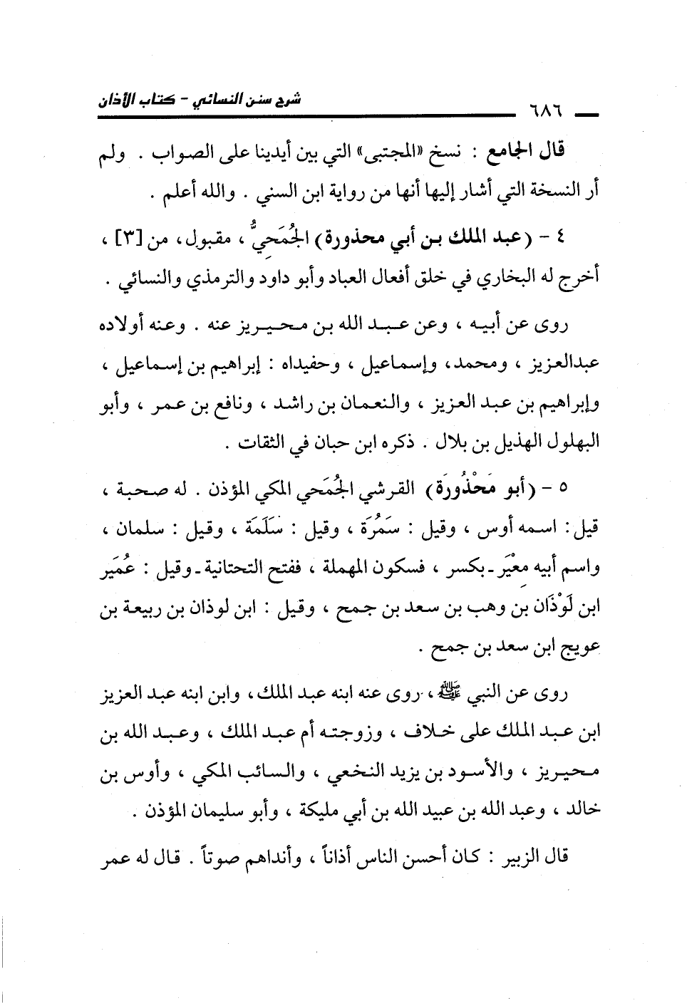 4 - (عبد الملك بن أبي محذورة) الجُمَحِيُّ، مقبول، من [3]، أخرج له البخاري في خلق أفعال العباد وأبو داود والترمذي والنسائي.