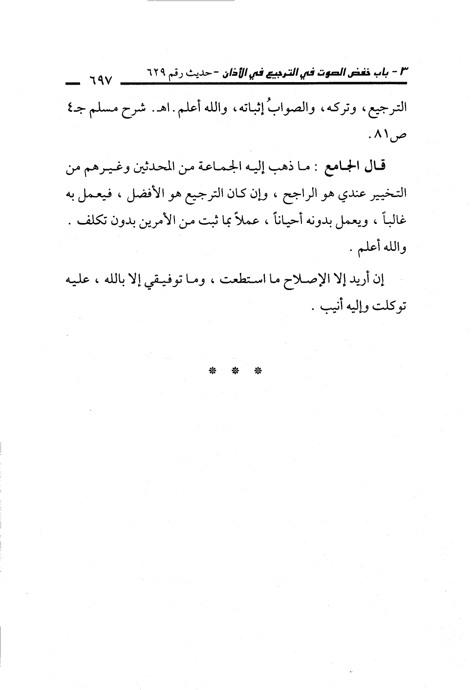 قال الجامع: ما ذهب إليه الجماعة من المحدثين وغيرهم من التخيير عندي هو الراجح، وإن كان الترجيح هو الأفضل، فيعمل به
