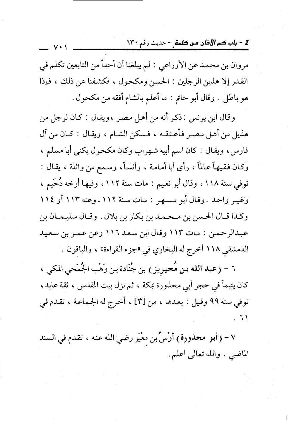 7 - (أبو محذورة) أوْسُ بن مِعْيَر رضي الله عنه، تقدم في السند الماضي. والله تعالى أعلم.