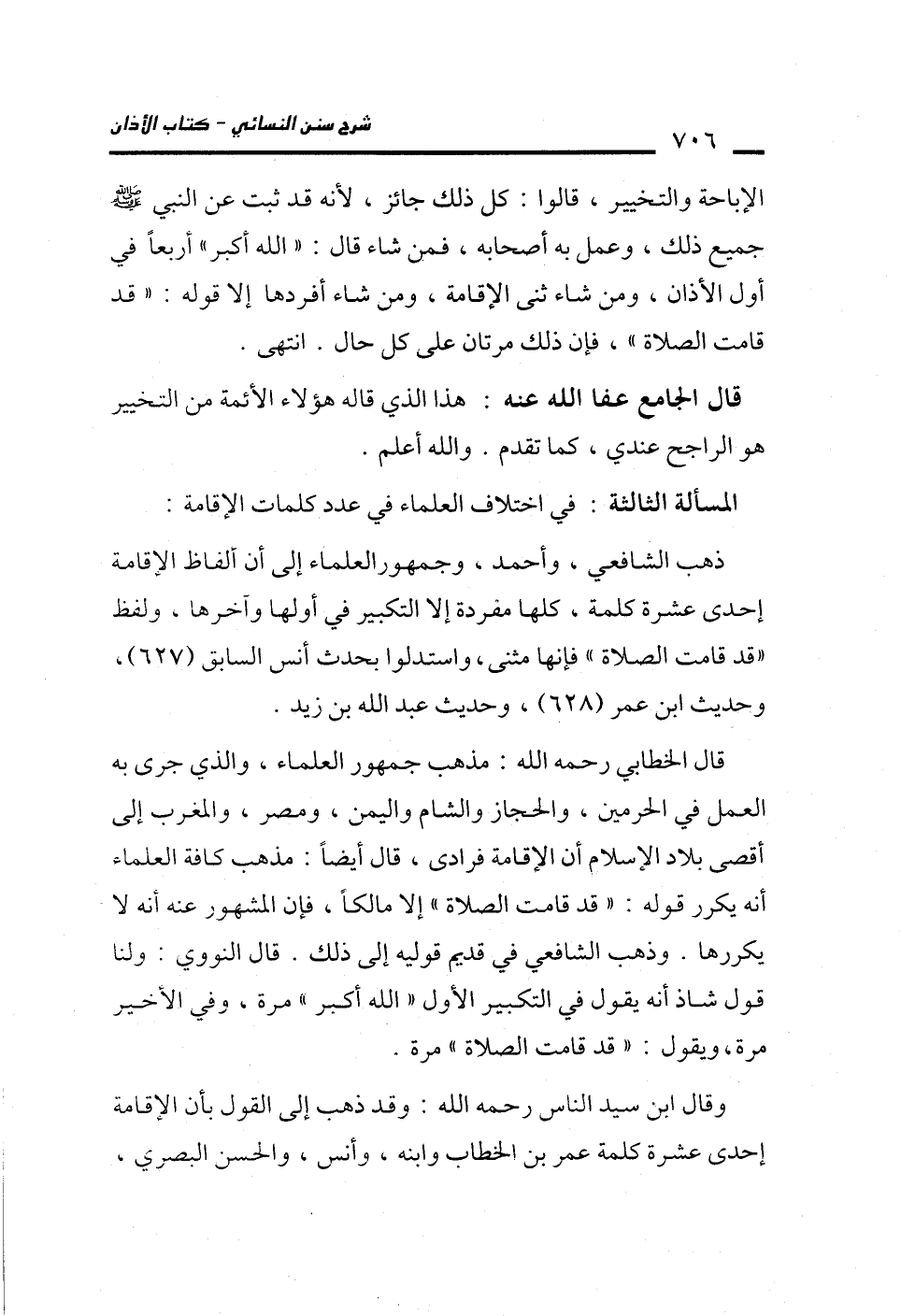المسألة الثالثة: في اختلاف العلماء في عدد كلمات الإقامة: