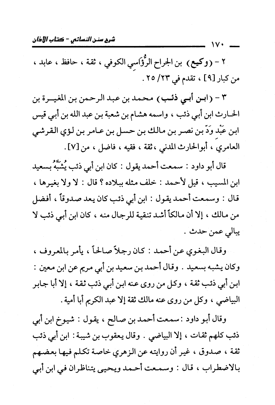 3 - (ابن أبي ذئب) محمد بن عبد الرحمن بن المغيرة بن الحارث ابن أبي ذئب، واسمه هشام بن شعبة بن عبد الله بن أبي قيس