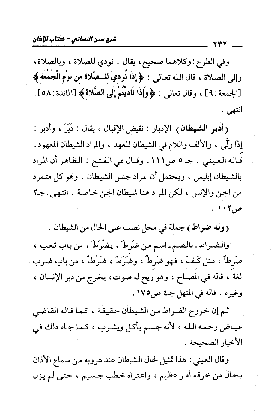 ثم إن خروج الضراط من الشيطان حقيقة، كما قاله القاضي عياض -رحمه الله-، لأنه جسم يأكل ويشرب، كما جاء ذلك في الأخبار الصحيحة.