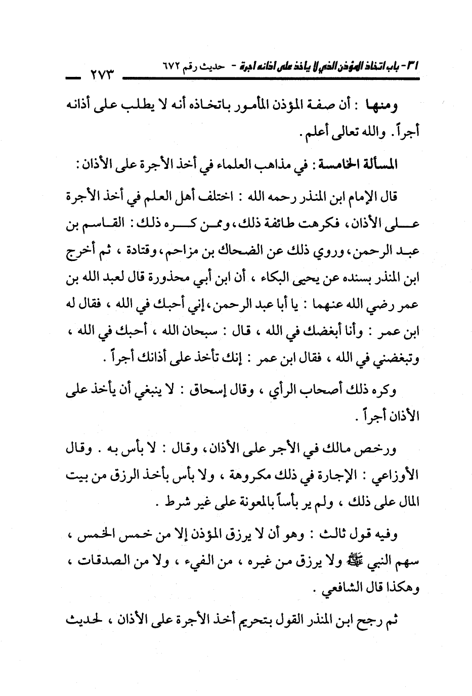 ثم رجح ابن المنذر القول بتحريم أخذ الأجرة على الأذان، لحديث