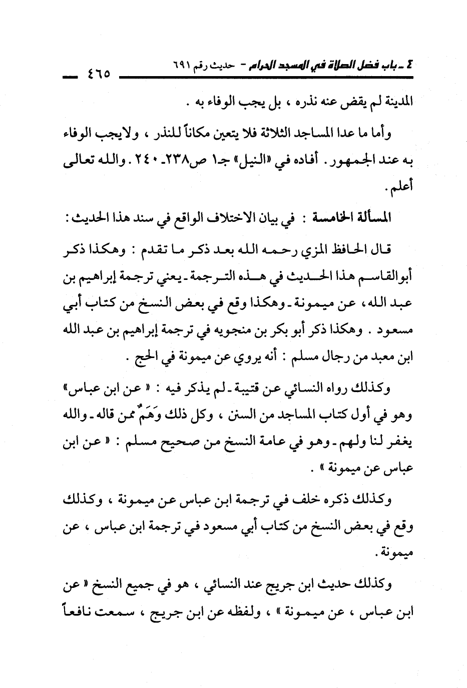 قال الحافظ المزي -رحمه الله- بعد ذكر ما تقدم: وهكذا ذكر أبو القاسم هذا الحديث في هذه الترجمة -يعني ترجمة إبراهيم بن عبد الله، عن ميمونة- وهكذا وقع في بعض النسخ من كتاب أبي مسعود. وهكذا ذكر أبو بكر بن منجويه في ترجمة إبراهيم بن عبد الله ابن معبد من رجال مسلم: أنه يروي عن ميمونة في الحج.