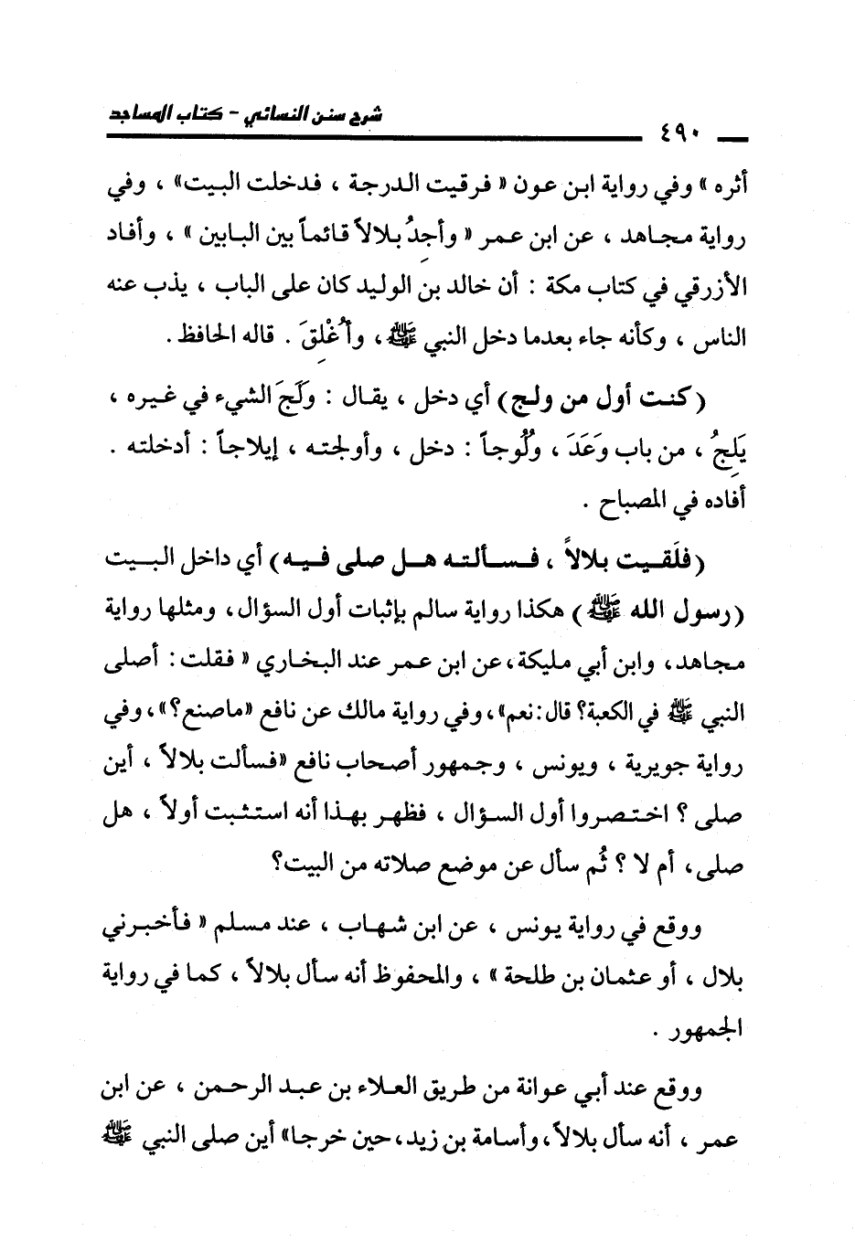 ووقع عند أبي عوانة من طريق العلاء بن عبد الرحمن , عن ابن عمر، أنه سأل بلالًا، وأسامة بن زيد، حين خرجا" أين صلى النبي - صلى الله عليه وسلم -