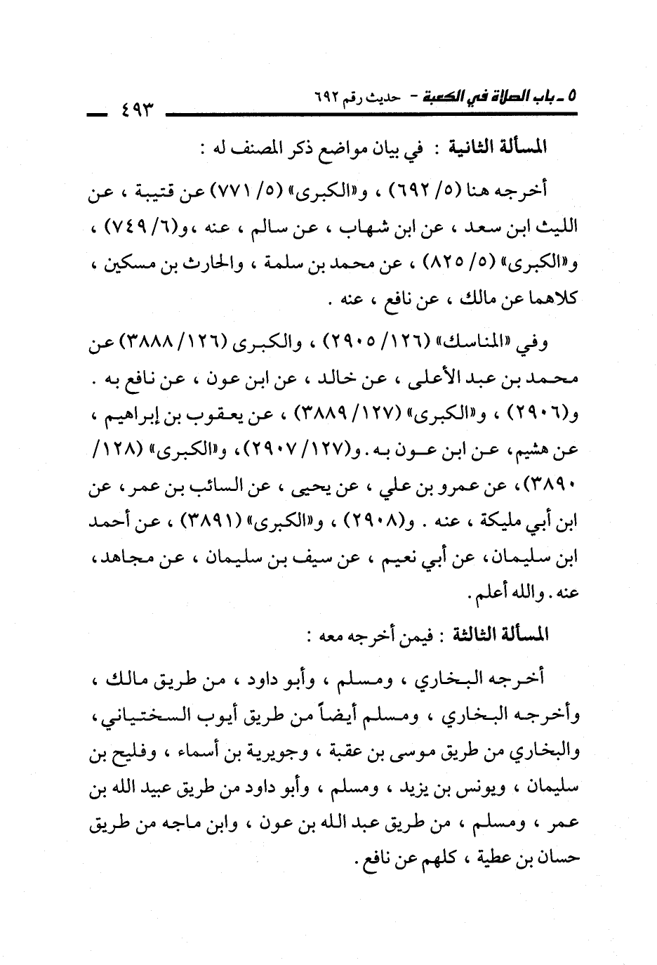 وفي "المناسك" (126/ 2905)، والكبرى (126/ 3888) عن محمد بن عبد الأعلى، عن خالد، عن ابن عون، عن نافع به. و (2906)، و"الكبرى" (127/ 3889)، عن يعقوب بن إبراهيم، عن هشيم، عن ابن عون به. و (127/ 2907)، و "الكبرى" (128/ 3890)، عن عمرو بن علي، عن يحيى، عن السائب بن عمر، عن ابن أبي مليكة، عنه. و (2908)، و"الكبرى" (3891)، عن أحمد ابن سليمان، عن أبي نعيم، عن سيف بن سليمان، عن مجاهد، عنه. والله أعلم.