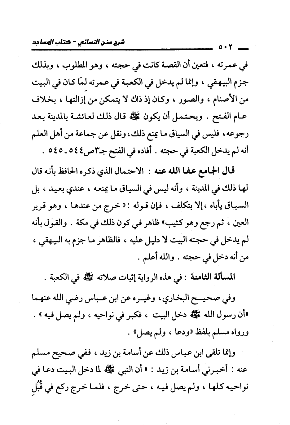 المسألة الثامنة: في هذه الرواية إثبات صلاته - صلى الله عليه وسلم - في الكعبة.