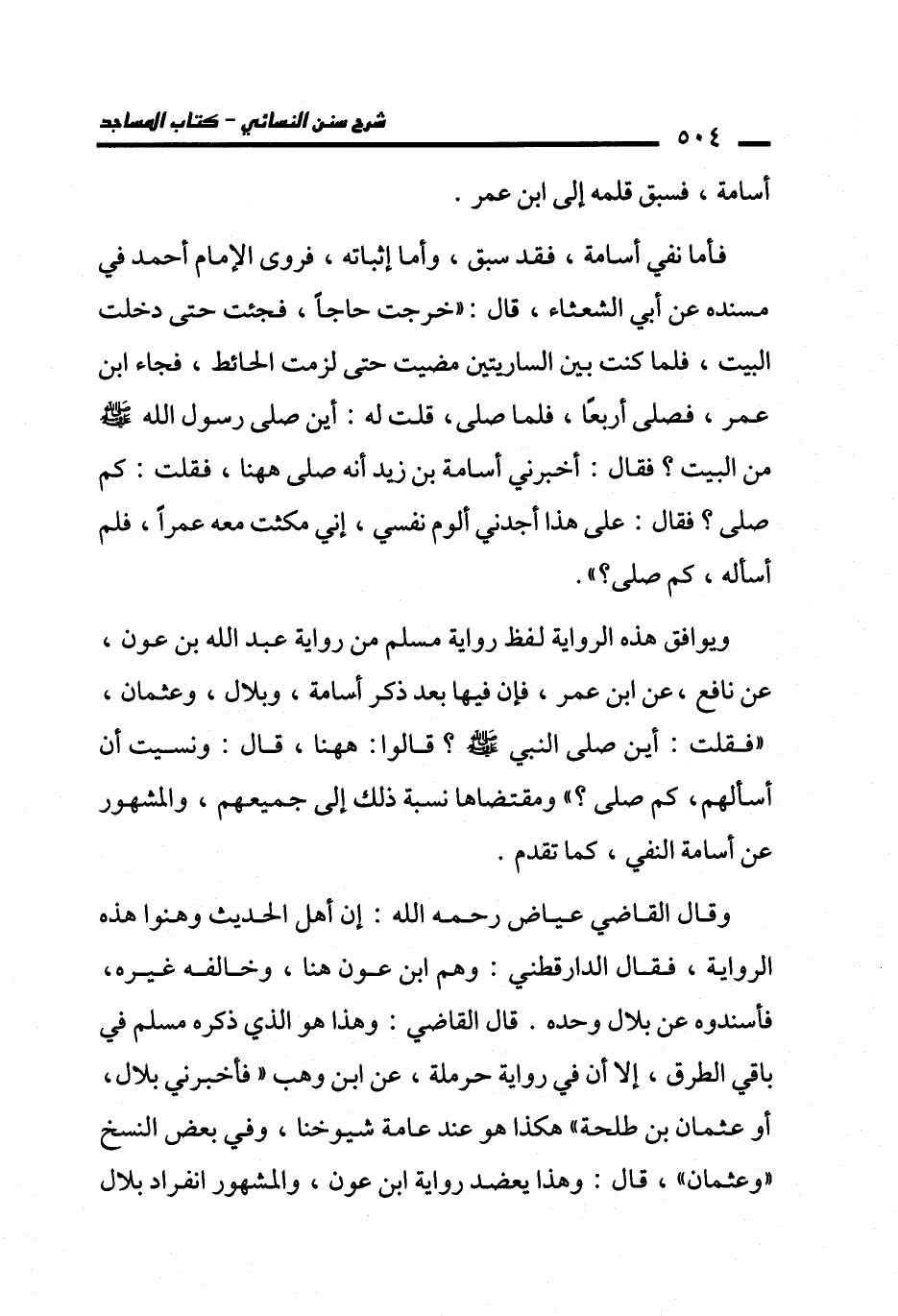 وقال القاضي عياض -رحمه الله-: إن أهل الحديث وهنوا هذه الرواية, فقال الدارقطني: وهم ابن عون هنا، وخالفه غيره، فأسندوه عن بلال وحده. قال القاضي: وهذا هو الذي ذكره مسلم في باقي الطرق، إلا أن في رواية حرملة، عن ابن وهب "فأخبرني بلال، أو عثمان بن طلحة" هكذا هو عند عامة شيوخنا، وفي بعض النسخ "وعثمان"، قال: وهذا يعضد رواية ابن عون، والمشهور انفراد بلال