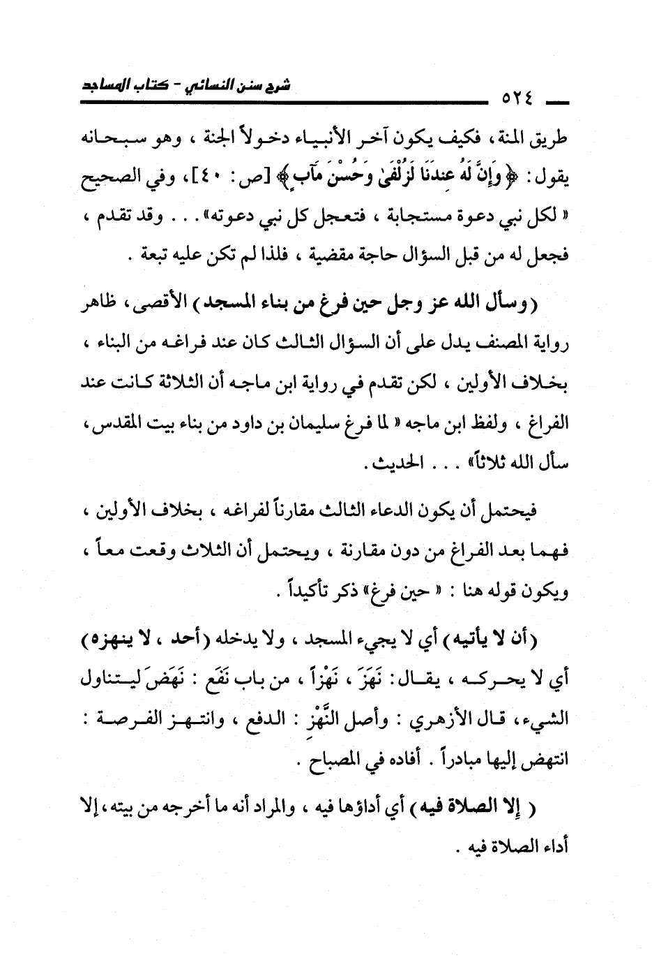 (وسأل الله عز وجل حين فغ من بناء المسجد) الأقصى، ظاهر رواية المصنف يدل على أن السؤال الثالث كان عند فراغه من البناء، بخلاف الأولين، لكن تقدم في رواية ابن ماجه أن الثلاثة كانت عند الفراغ، ولفظ ابن ماجه "لما فرغ سليمان بن داود من بناء بيت المقدس، سأل الله ثلاثًا". .. الحديث.