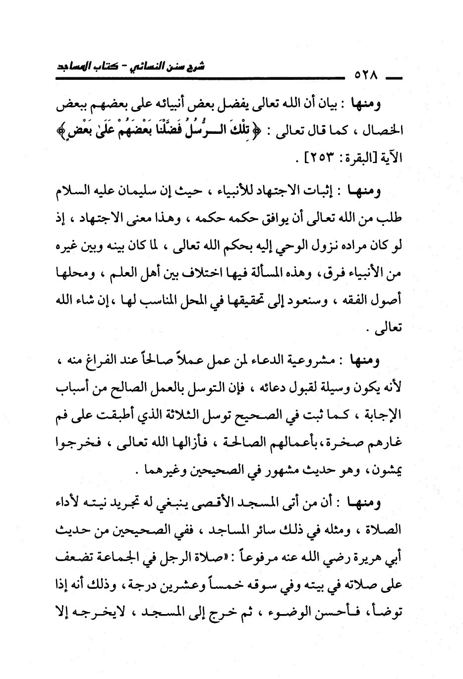 ومنها: إثبات الاجتهاد للأنبياء، حيث إن سليمان عليه السلام طلب من الله تعالى أن يوافق حكمه حكمه، وهذا معنى الاجتهاد، إذ لو كان مراده نزول الوحي إليه بحكم الله تعالى، لما كان بينه وبين غيره من الأنبياء فرق، وهذه المسألة فيها اختلاف بين أهل العلم، ومحلها أصول الفقه، وسنعود إلى تحقيقها في المحل المناسب لها، إن شاء الله تعالى.