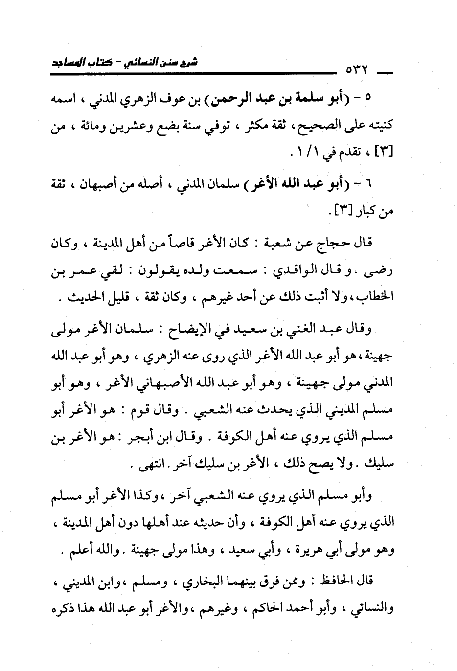 6 - (أبو عبد الله الأغر) سلمان المدني، أصله من أصبهان، ثقة من كبار [3].