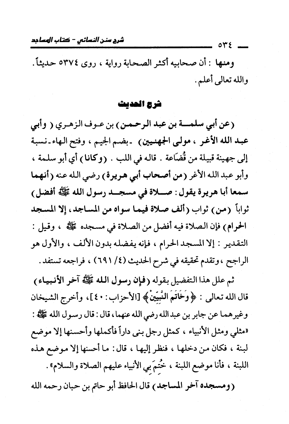 (ومسجده آخر المساجد) قال الحافظ أبو حاتم بن حبان -رحمه الله-