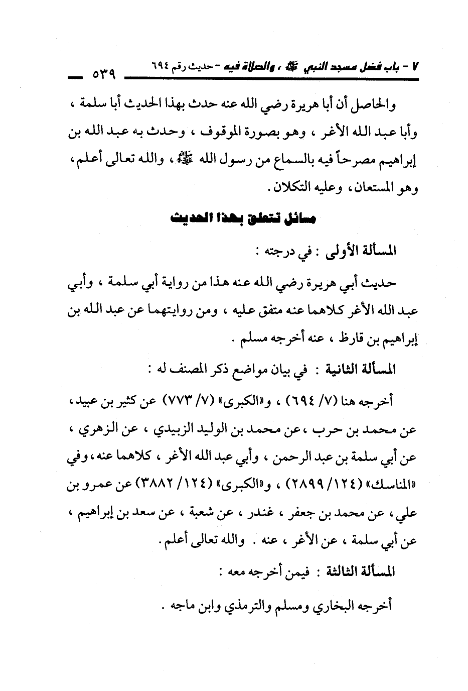 مسائل تتعلق بهذا الحديث