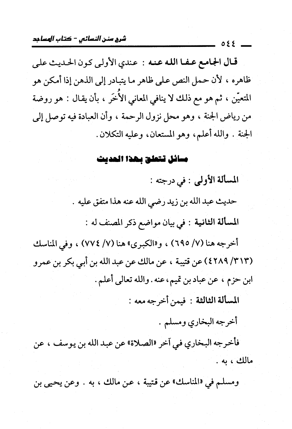 أخرجه هنا (7/ 695)، و"الكبرى" هنا (7/ 774)، وفي المناسك (313/ 4289) عن قتيبة، عن مالك عن عبد الله بن أبي بكر بن عمرو ابن حزم، عن عباد بن تميم، عنه. والله تعالى أعلم.