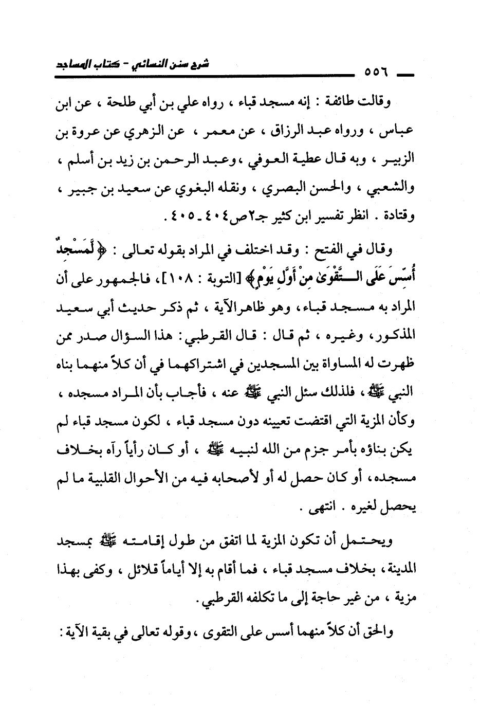 وقالت طائفة: إنه مسجد قباء، رواه علي بن أبي طلحة، عن ابن عباس، ورواه عبد الرزاق، عن معمر، عن الزهري عن عروة بن الزبير، وبه قال عطية العوفي، وعبد الرحمن بن زيد بن أسلم، والشعبي، والحسن البصري، ونقله البغوي عن سعيد بن جبير، وقتادة. انظر تفسير ابن كثير جـ 2 عى 404 - 405.