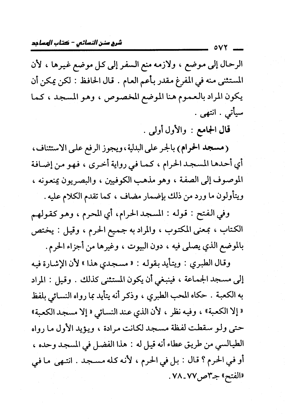 وقال الطبري: ويتأيد بقوله: "مسجدي هذا" لأن الإشارة فيه إلى مسجد الجماعة، فينبغي أن يكون المستثنى كذلك. وقيل: المراد به الكعبة. حكاه المحب الطبري، وذكر أنه يتأيد بما رواه النسائي بلفظ "إلا الكعبة"، وفيه نظر؛ لأن الذي عند النسائي "إلا مسجد الكعبة" حتى ولو سقطت لفظة مسجد لكانت مرادة، ويؤيد الأول ما رواه الطيالسي من طريق عطاء أنه قيل له: هذا الفضل في المسجد وحده، أو في الحرم؟ قال: بل في الحرم؛ لأنه كله مسجد. انتهى ما في "الفتح" جـ 3 ص 77 - 78.