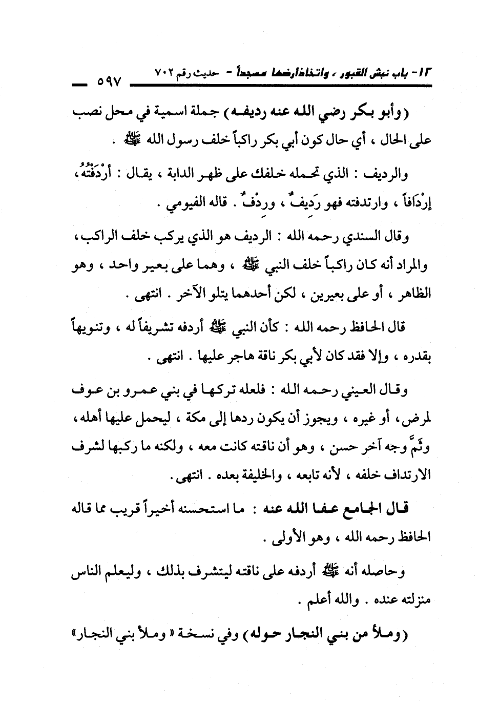 وقال السندي -رحمه الله-: الرديف هو الذي يركب خلف الراكب، والمراد أنه كان راكبًا خلف النبي - صلى الله عليه وسلم -، وهما على بعير واحد، وهو الظاهر، أو على بعيرين، لكن أحدهما يتلو الآخر. انتهى.