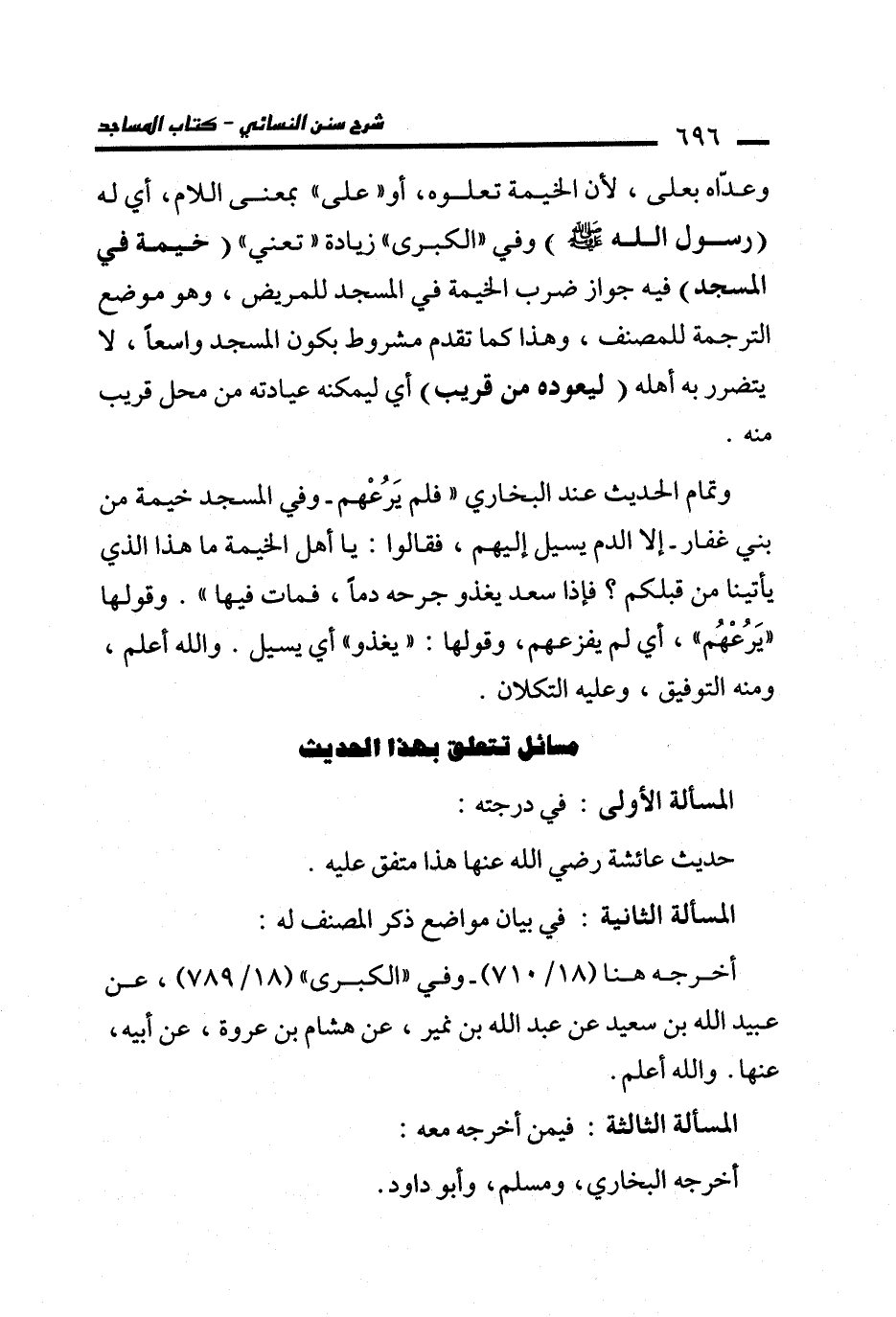 وتمام الحديث عند البخاري "فلم يَرُعْهم -وفي المسجد خيمة من بني غفار- إلا الدم يسيل إليهم، فقالوا: يا أهل الخيمة ما هذا الذي يأتينا من قبلكم؟ فإذا سعد يغذو جرحه دمًا، فمات فيها". وقولها "يَرُعْهُم"، أي لم يفزعهم، وقولها: "يغذو" أي يسيل. والله أعلم، ومنه التوفيق، وعليه التكلان.