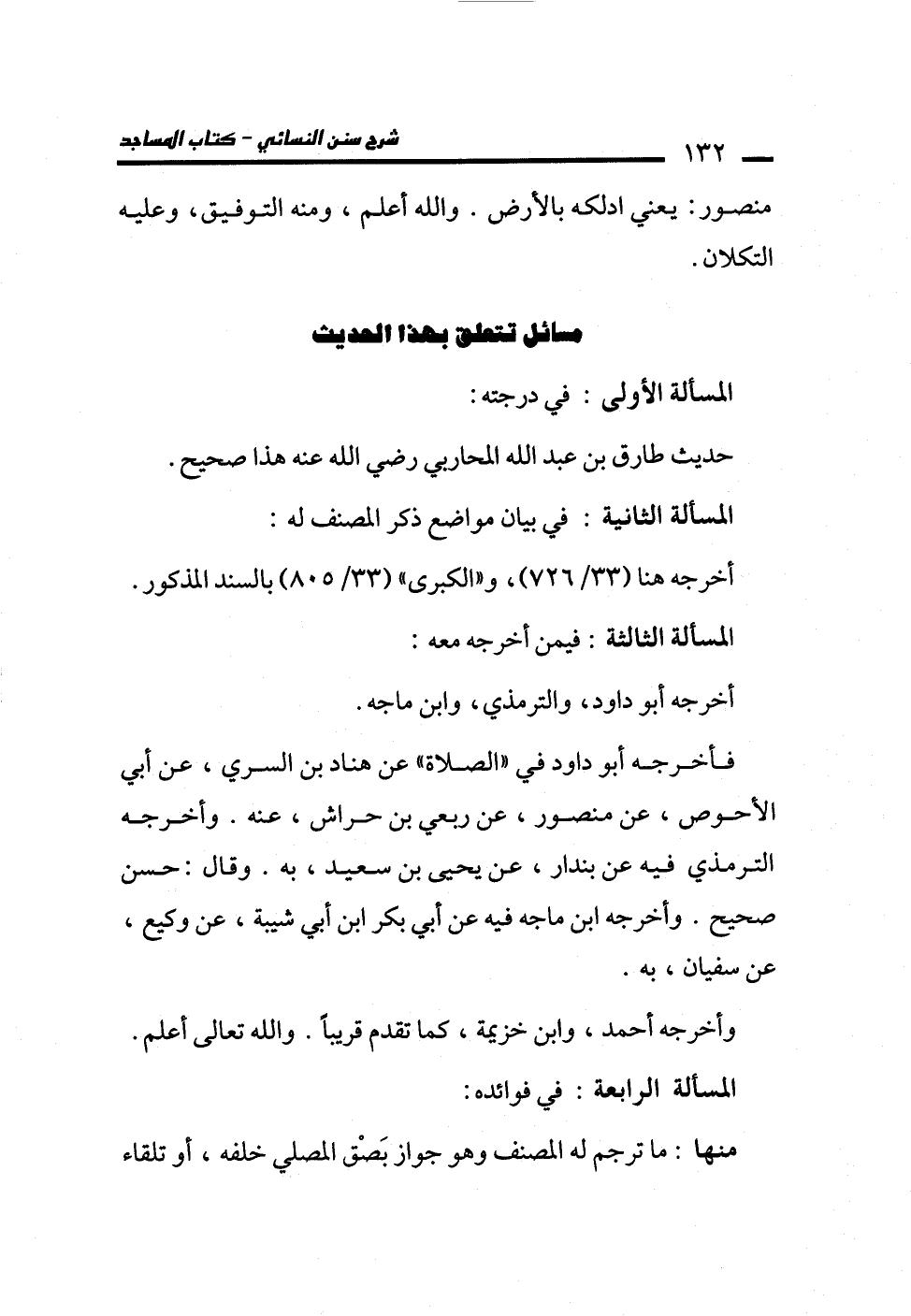فأخرجه أبو داود في "الصلاة" عن هناد بن السري، عن أبي الأحوص، عن منصور، عن ربعي بن حراش، عنه. وأخرجه الترمذي فيه عن بندار، عن يحيى بن سعيد، به. وقال: حسن صحيح. وأخرجه ابن ماجه فيه عن أبي بكر ابن أبي شيبة، عن وكيع، عن سفيان، به.