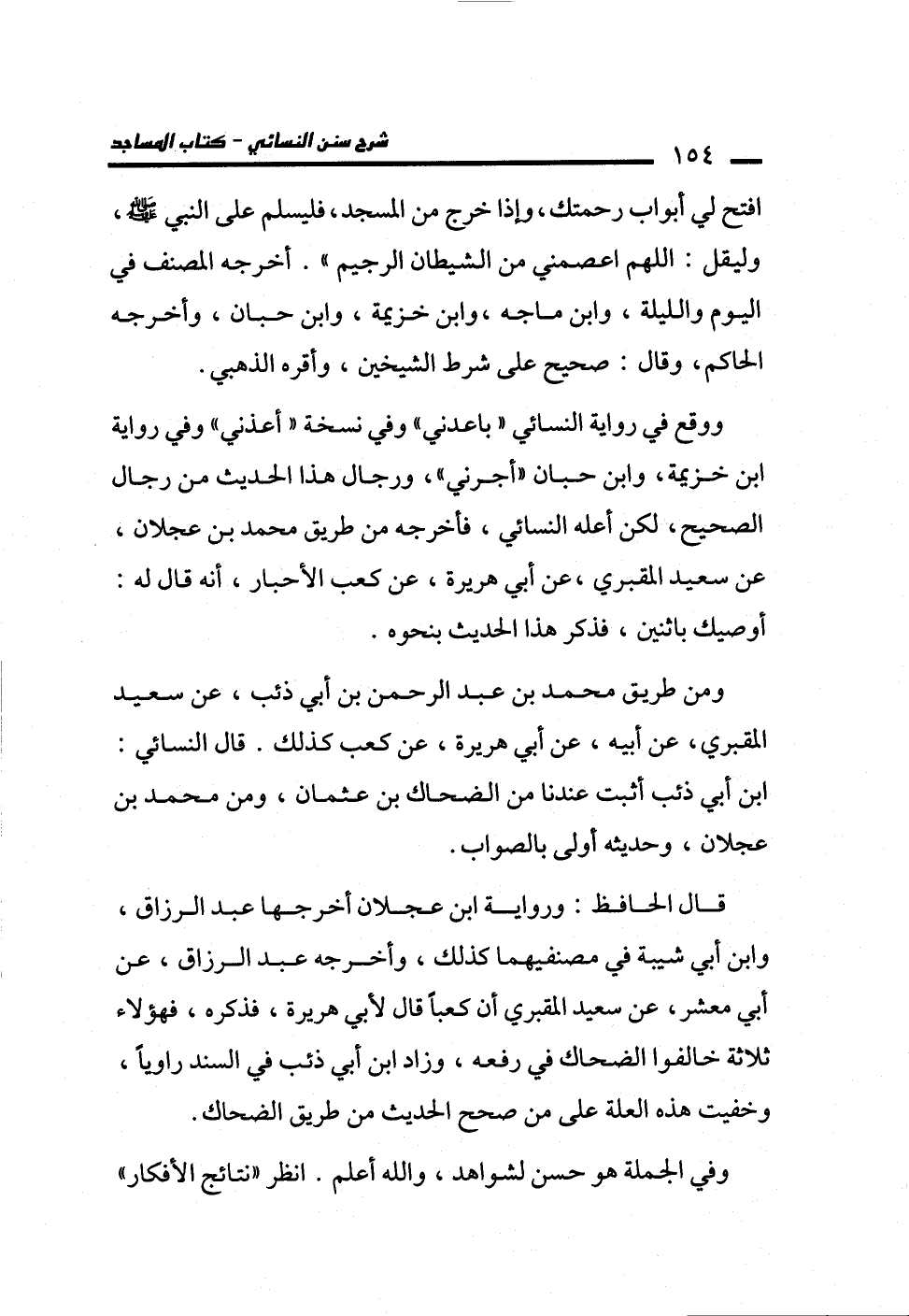 افتح لي أبواب رحمتك، وإذا خرج من المسجد، فليسلم على النبي -صلى الله عليه وسلم-، وليقل: اللهم اعصمني من الشيطان الرجيم". أخرجه المصنف في اليوم والليلة، وابن ماجه، وابن خزيمة، وابن حبان، وأخرجه الحاكم، وقال: صحيح على شرط الشيخين، وأقره الذهبي.