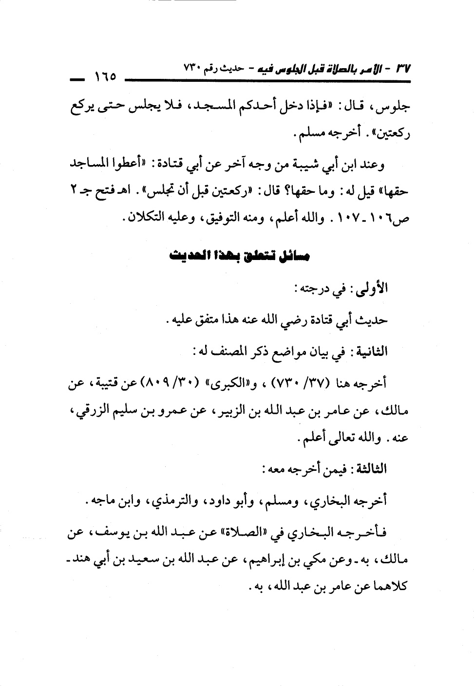 وعند ابن أبي شيبة من وجه آخر عن أبي قتادة: "أعطوا المساجد حقها" قيل له: وما حقها؟ قال: "ركعتين قبل أن تجلس". اهـ فتح جـ 2 ص 106 - 107. والله أعلم، ومنه التوفيق، وعليه التكلان.
