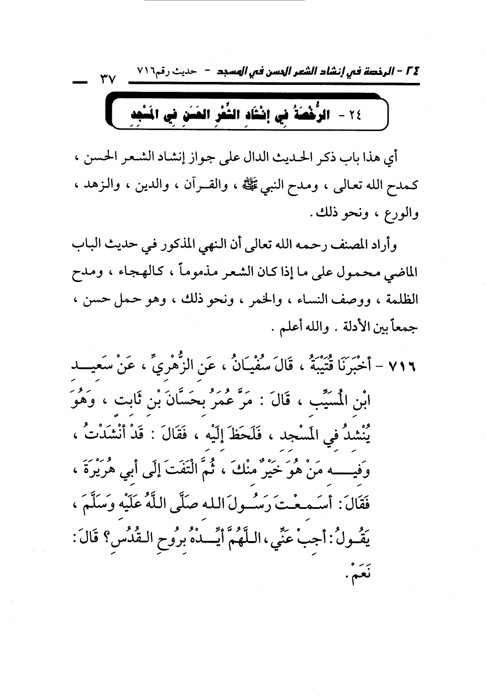 24 - الرُّخْصَةُ فِي إنْشَادِ الشِّعْرِ الحَسَنِ فِي المَسْجِدِ