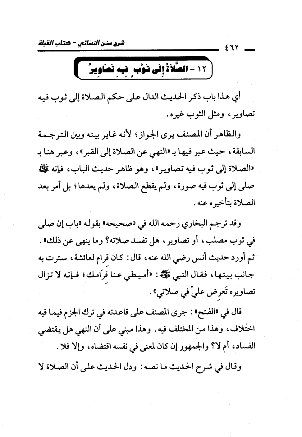 12 - الصَّلاَةُ إِلَى ثَوْبٍ فِيهِ تَصَاوِيرُ