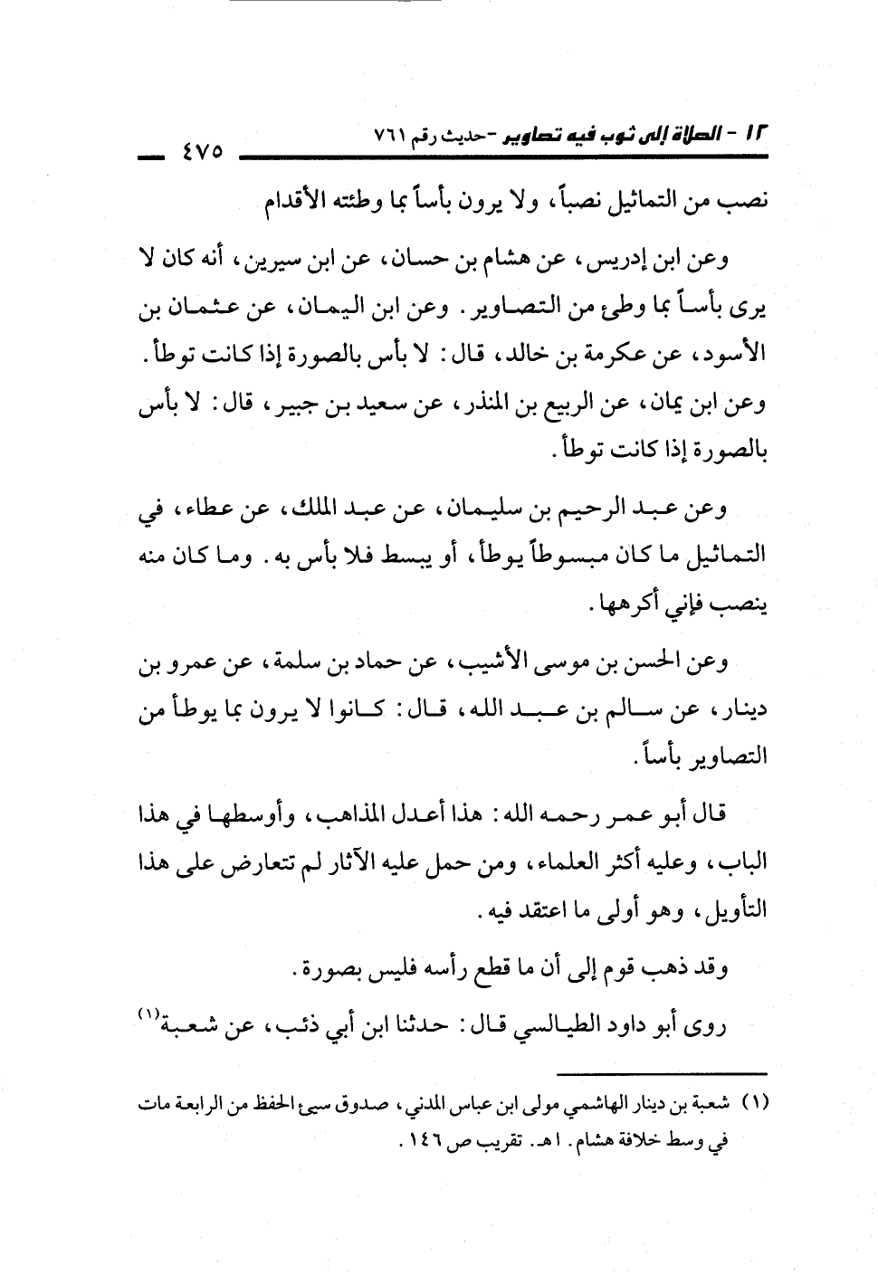 وعن الحسن بن موسى الأشيب، عن حماد بن سلمة، عن عمرو بن دينار، عن سالم بن عبد الله، قال: كانوا لا يرون بما يوطأ من التصاوير بأساً.