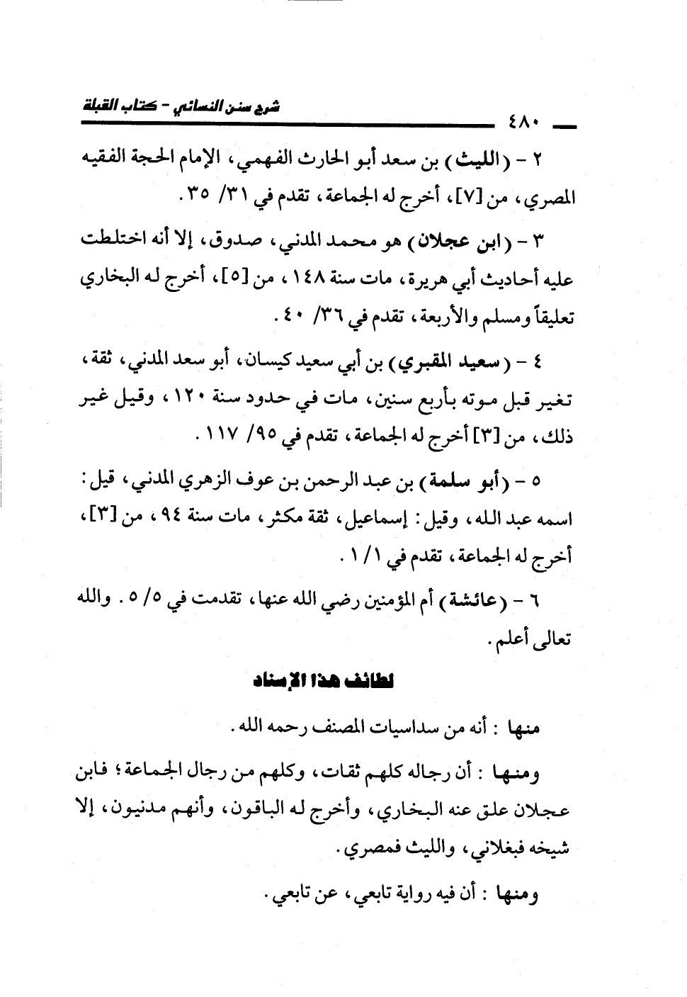 ومنها: أن رجاله كلهم ثقات، وكلهم من رجال الجماعة؛ فابن عجلان علق عنه البخاري، وأخرج له الباقون، وأنهم مدنيون، إلا شيخه فبغلاني، والليث فمصري.