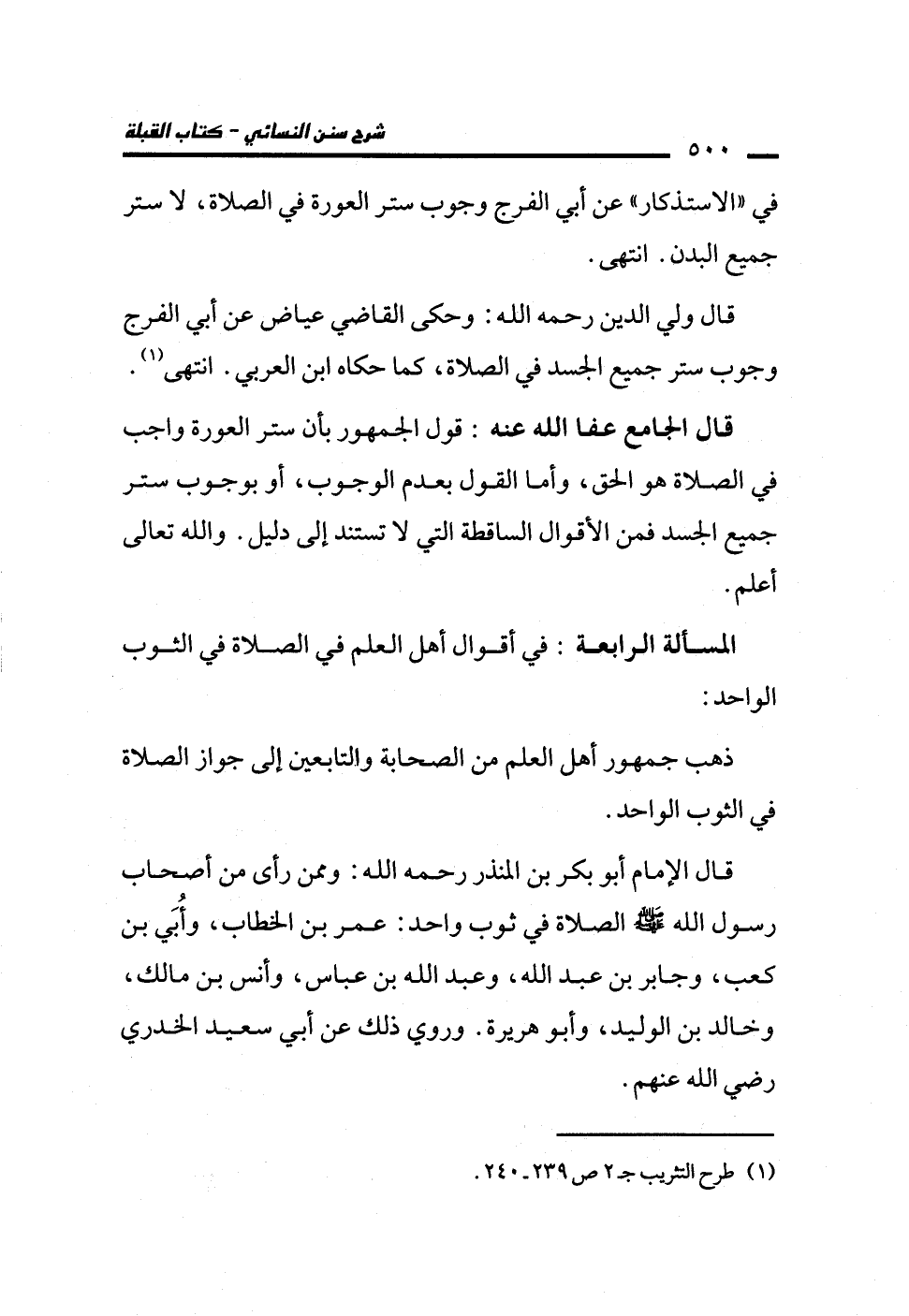 المسألة الرابعة: في أقوال أهل العلم في الصلاة في الثوب الواحد: