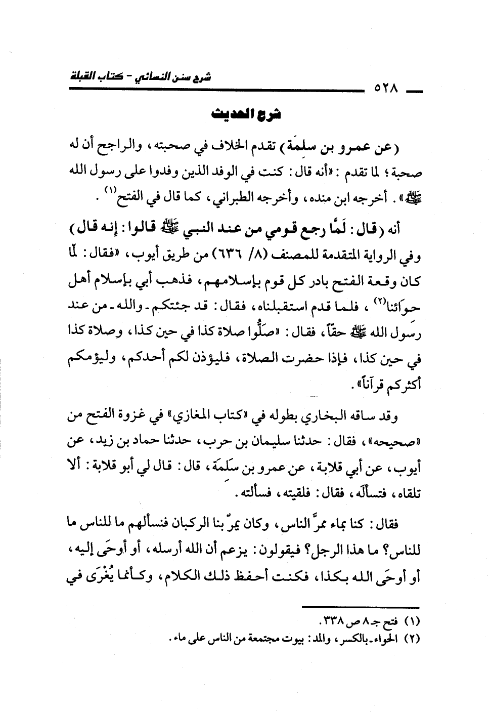 وقد ساقه البخاري بطوله في "كتاب المغازي" في غزوة الفتح من "صحيحه"، فقال: حدثنا سليمان بن حرب، حدثنا حماد بن زيد، عن أيوب، عن أبي قلابة، عن عمرو بن سَلِمَة، قال: قال لي أبو قلابة: ألا تلقاه، فتسألَه، فقال: فلقيته، فسألته.