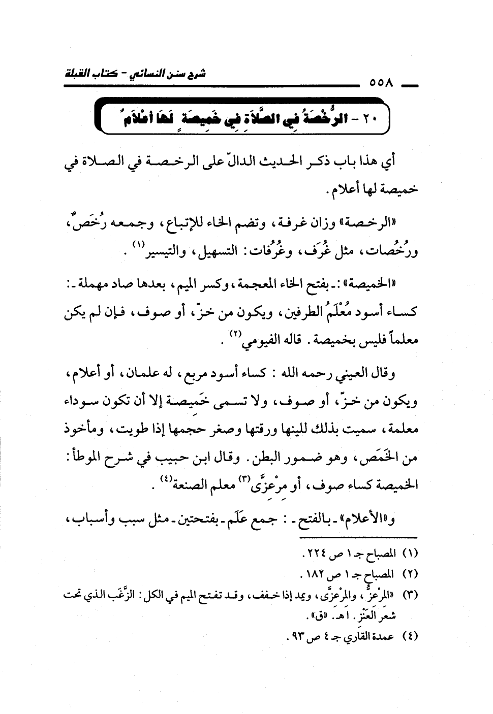 20 - الرُّخْصَةُ فِي الصَّلاَةِ فِي خَميصَةٍ لَهَا أعْلاَمٌ
