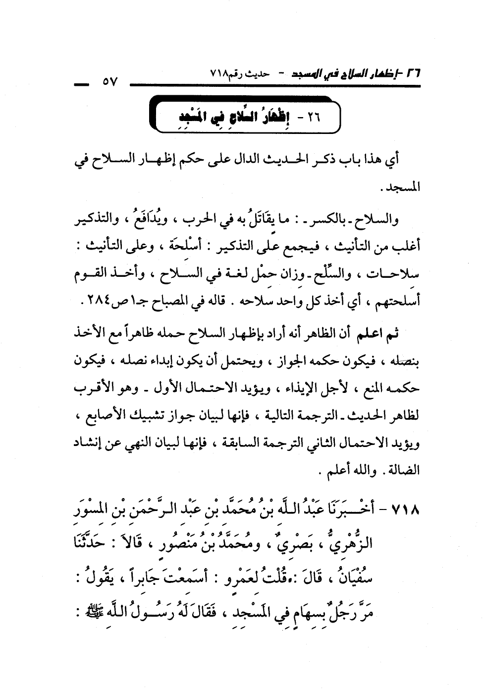 26 - إِظْهَارُ السِّلاحِ فِي المَسْجِدِ