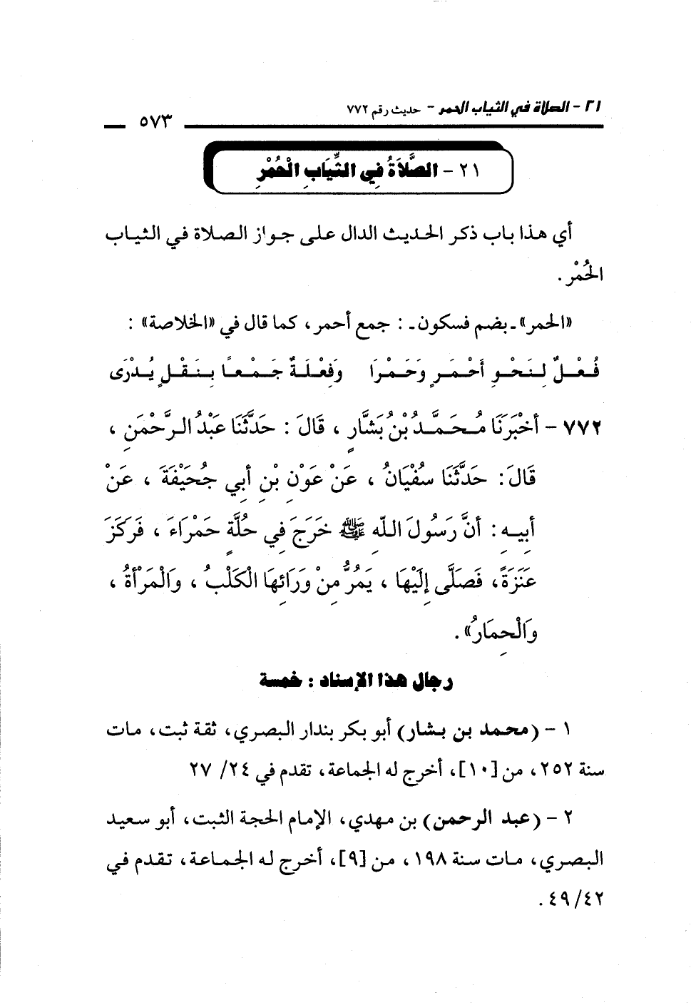 21 - الصَّلاَةُ فِي الثِّيَابِ الْحُمْرِ
