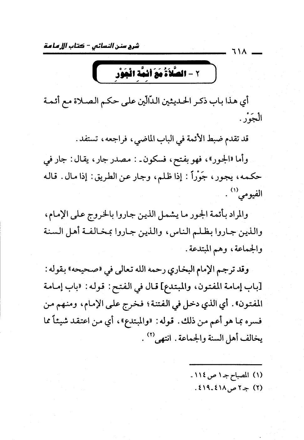 وقد ترجم الإمام البخاري رحمه الله تعالى في "صحيحه" بقوله: [باب إمامة المفتون، والمبتدع] قال في الفتح: قوله: "باب إمامة المفتون". أي الذي دخل في الفتنة؛ فخرج على الإمام، ومنهم من فسره بما هو أعم من ذلك. قوله: "والمبتدع"، أي من اعتقد شيئاً مما يخالف أهل السنة والجماعة. انتهى (¬2).
