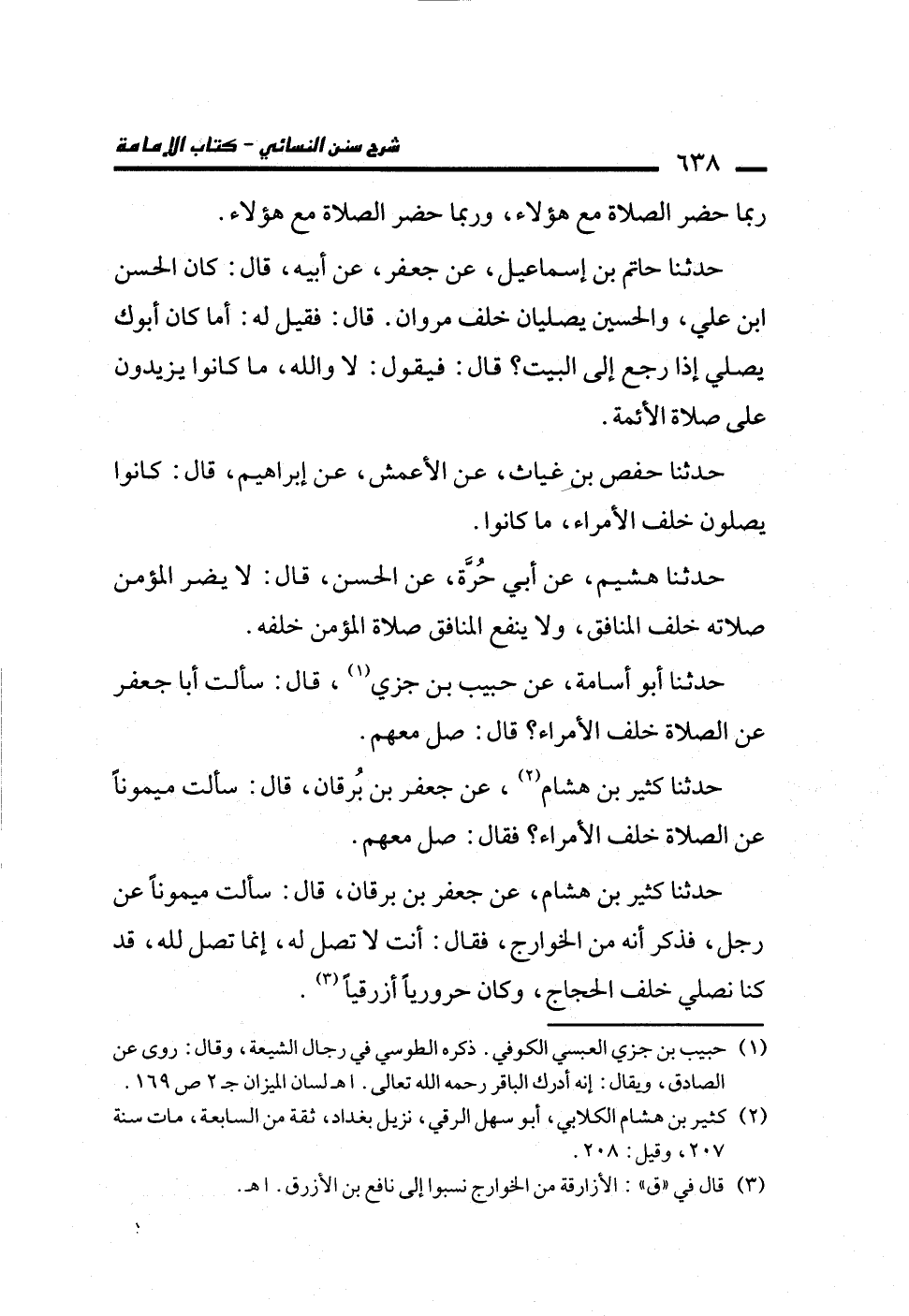 حدثنا كثير بن هشام، عن جعفر بن برقان، قال: سألت ميموناً عن رجل، فذكر أنه من الخوارج، فقال: أنت لا تصل له، إنما تصل لله، قد كنا نصلي خلف الحجاج، وكان حرورياً أزرقياً (¬3).