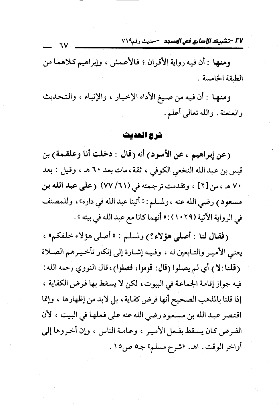(عن إِبراهيم، عن الأسود) أنه (قال: دخلت أنا وعلقمة) بن قيس بن عبد الله النخعي الكوفي، ثقة، مات بعد 60 هـ، وقيل: بعد 70 هـ، من [2]، وتقدمت ترجمته في (61/ 77) (على عبد الله بن مسعود) رضي الله عنه، ولمسلم: "أتينا عبد الله في داره"، وللمصنف في الرواية الآتية (1029): "أنهما كانا مع عبد الله في بيته".