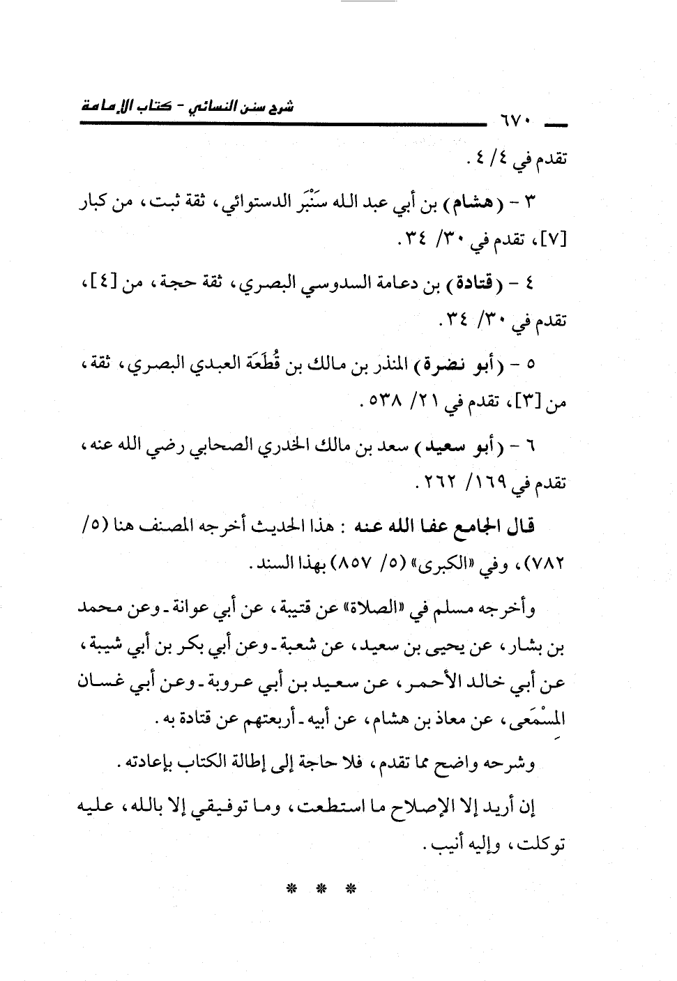 وأخرجه مسلم في "الصلاة" عن قتيبة، عن أبي عوانة -وعن محمد بن بشار، عن يحيى بن سعيد، عن شعبة- وعن أبي بكر بن أبي شيبة، عن أبي خالد الأحمر، عن سعيد بن أبي عروبة -وعن أبي غسان المِسْمَعى، عن معاذ بن هشام، عن أبيه- أربعتهم عن قتادة به.