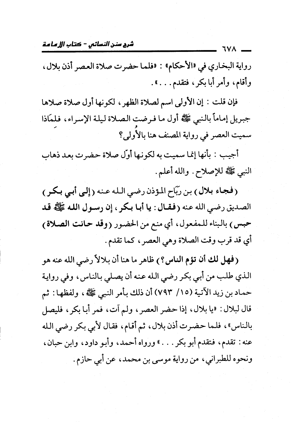 (فهل لك أن تؤم الناس؟) ظاهر ما هنا أن بلالاً رضي الله عنه هو الذي طلب من أبي بكر رضي الله عنه أن يصلي بالناس، وفي رواية حماد بن زيد الآتية (15/ 793) أن ذلك بأمر النبي -صلى الله عليه وسلم-، ولفظها: ثم قال لبلال: "يا بلال، إذا حضر العصر، ولم آت، فمر أبا بكر، فليصل بالناس"، فلما حضرت أذن بلال، ثم أقام، فقال لأبي بكر رضي الله عنه: تقدم، فتقدم أبو بكر ... " ورواه أحمد، وأبو داود، وابن حبان، ونحوه للطبراني، من رواية موسى بن محمد، عن أبي حازم.