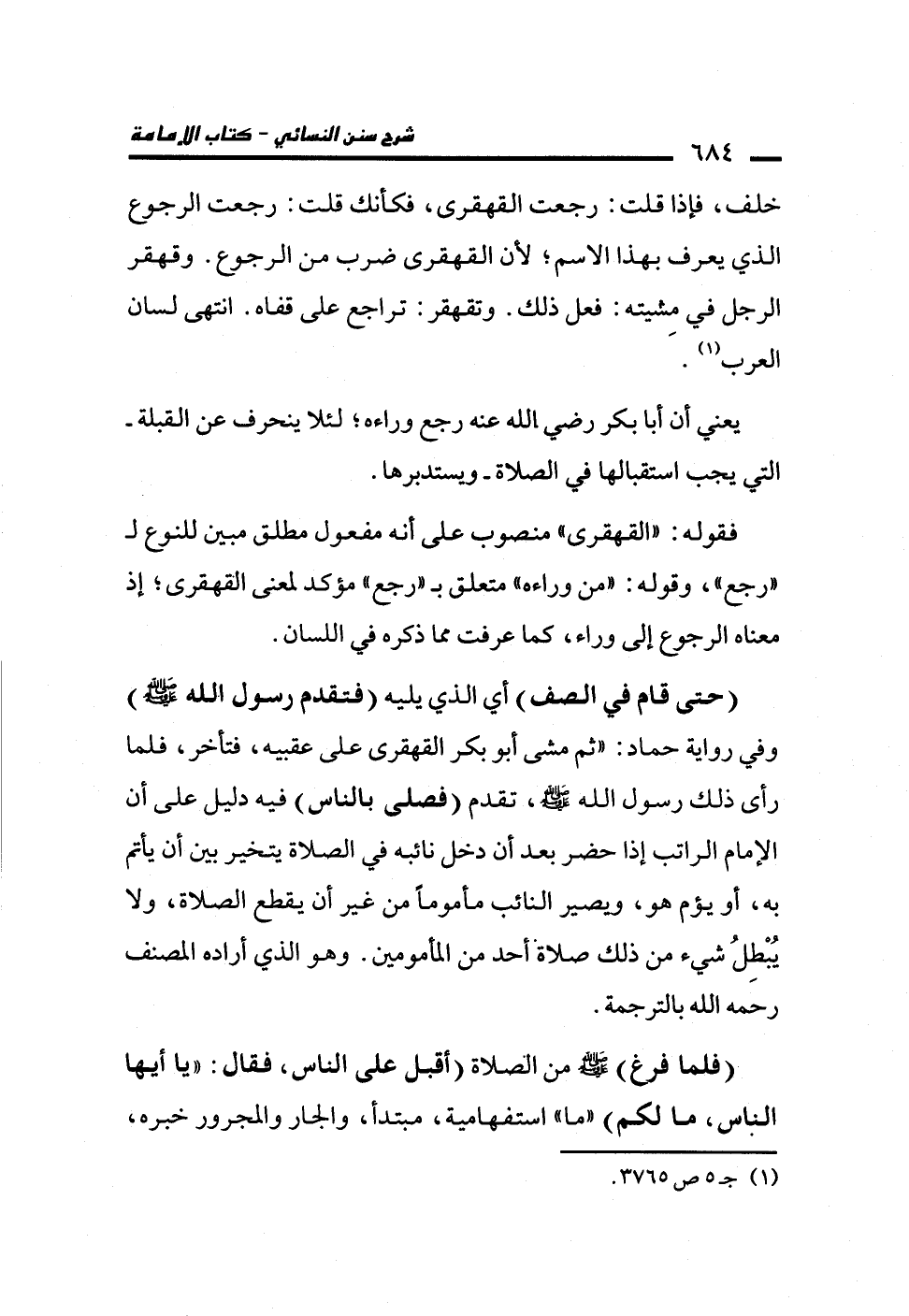 يعني أن أبا بكر رضي الله عنه رجع وراءه؛ لئلا ينحرف عن القبلة -التي يجب استقبالها في الصلاة- ويستدبرها.