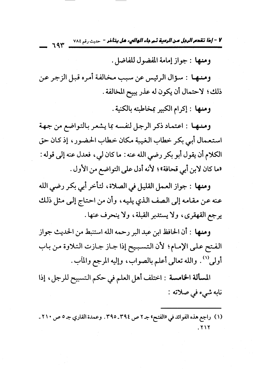 (¬1) راجع هذه الفوائد في "الفتح" جـ 2 ص 394 - 395. وعمدة القاري جـ 5 ص 210 - 212.
