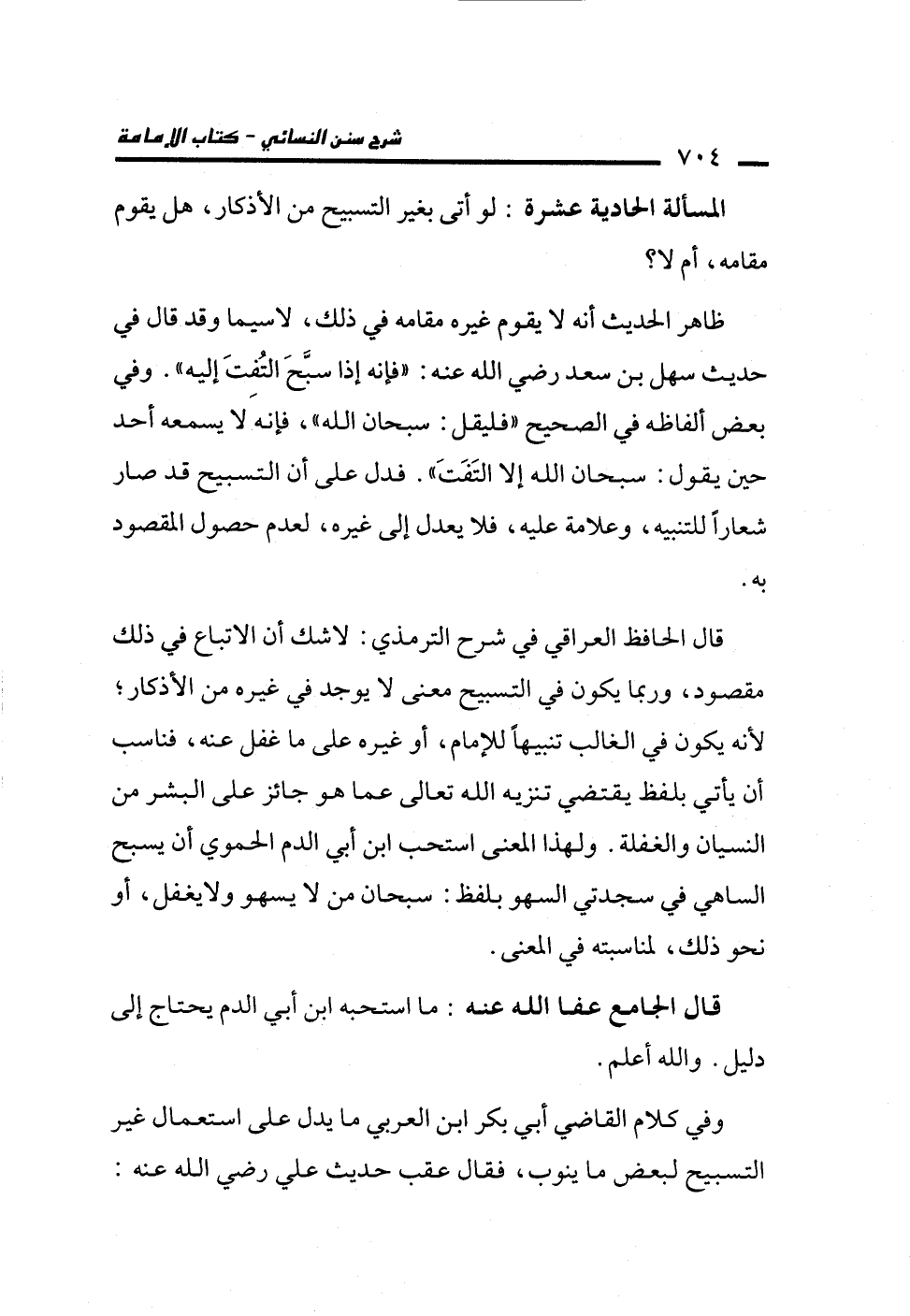 المسألة الحادية عشرة: لو أتى بغير التسبيح من الأذكار، هل يقوم مقامه، أم لا؟