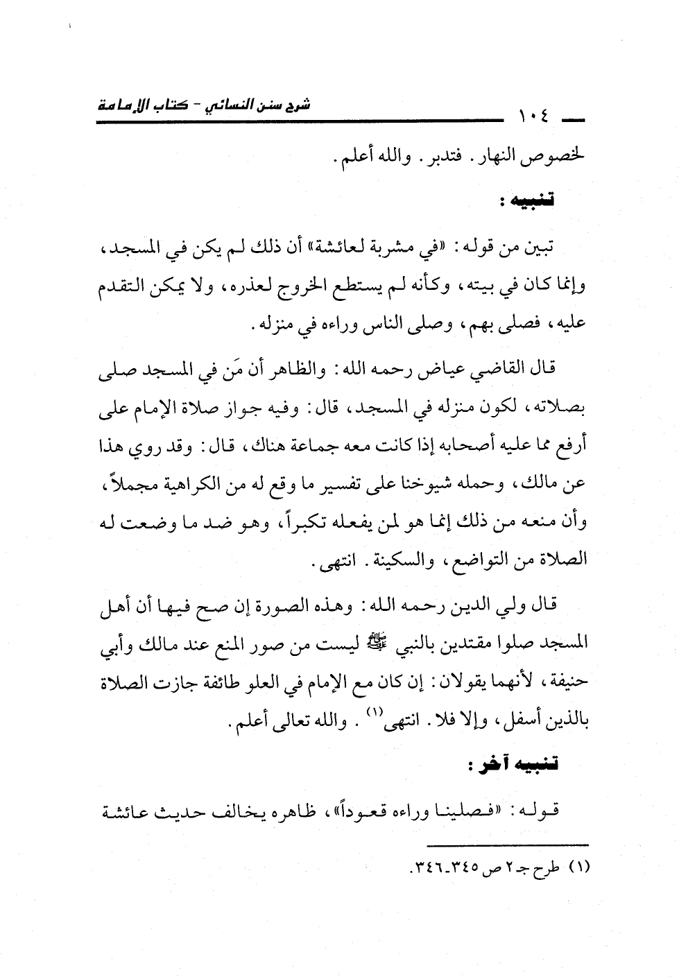 قال ولي الدين رحمه الله: وهذه الصورة إن صح فيها أن أهل المسجد صلوا مقتدين بالنبي -صلى الله عليه وسلم- ليست من صور المنع عند مالك وأبي حنيفة، لأنهما يقولان: إن كان مع الإمام في العلو طائفة جازت الصلاة بالذين أسفل، وإلا فلا. انتهى (¬1)، والله تعالى أعلم.