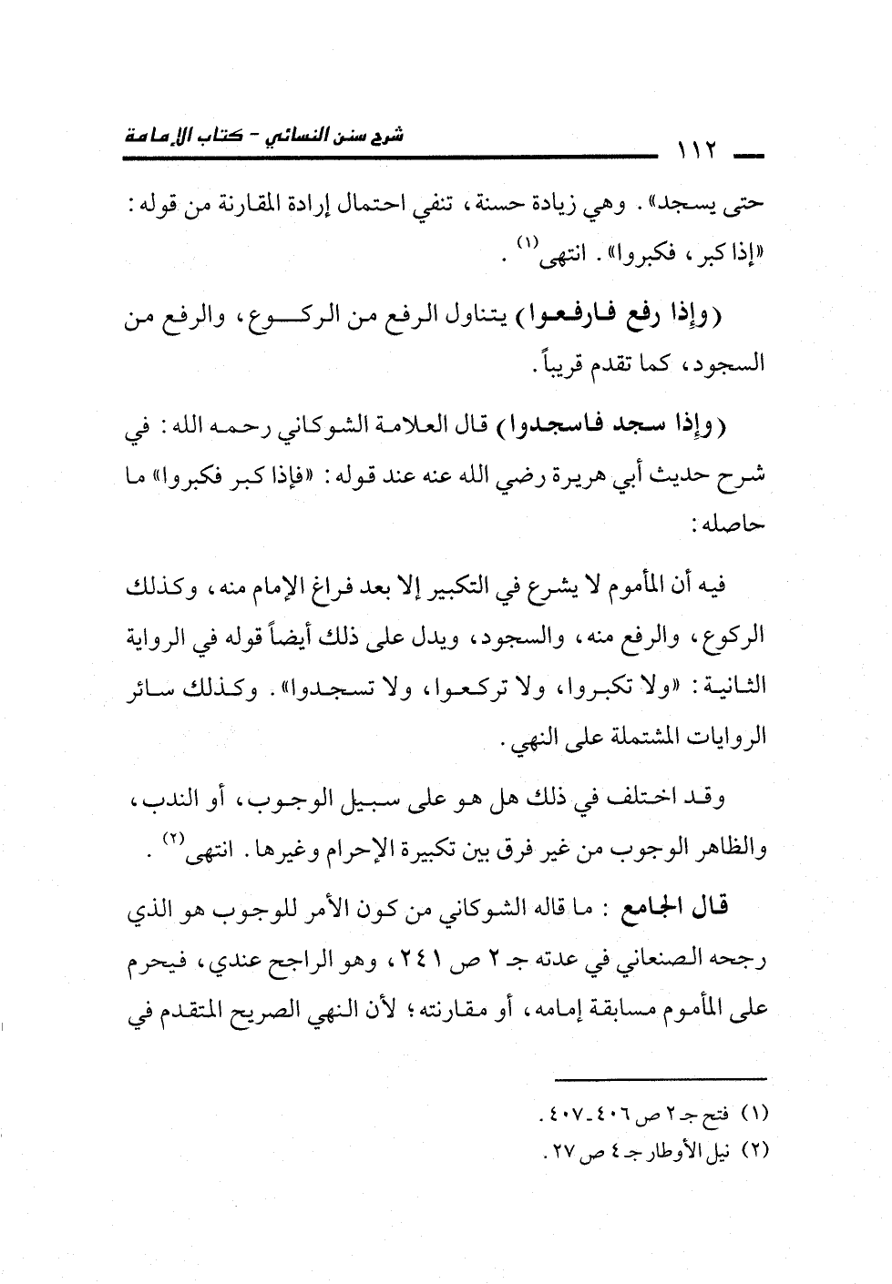 قال الجامع: ما قاله الشوكاني من كون الأمر للوجوب هو الذي رجحه الصنعاني في عدته جـ 2 ص 241، وهو الراجح عندي، فيحرم على المأموم مسابقة إمامه، أو مقارنته؛ لأن النهي الصريح المتقدم في