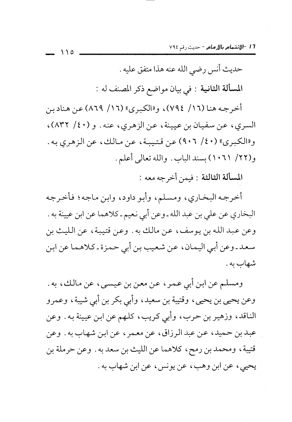 ومسلم عن ابن أبي عمر، عن معن بن عيسى، عن مالك، به. وعن يحيى بن يحيى، وقتيبة بن سعيد، وأبي بكر بن أبي شيبة، وعمرو الناقد، وزهير بن حرب، وأبي كريب، كلهم عن ابن عيينة به. وعن عبد بن حميد، عن عبد الرزاق، عن معمر، عن ابن شهاب به. وعن قتيبة، ومحمد بن رمح، كلاهما عن الليث بن سعد به. وعن حرملة بن يحيي، عن ابن وهب، عن يونس، عن ابن شهاب به.