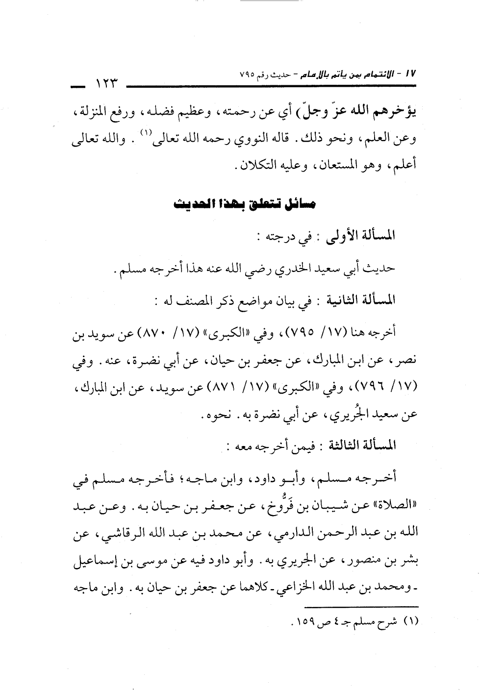 أخرجه هنا (17/ 795)، وفي "الكبرى" (17/ 870) عن سويد بن نصر، عن ابن المبارك، عن جعفر بن حيان، عن أبي نضرة، عنه. وفي (17/ 796)، وفي "الكبرى" (17/ 871) عن سويد، عن ابن المبارك، عن سعيد الجُريري، عن أبي نضرة به. نحوه.