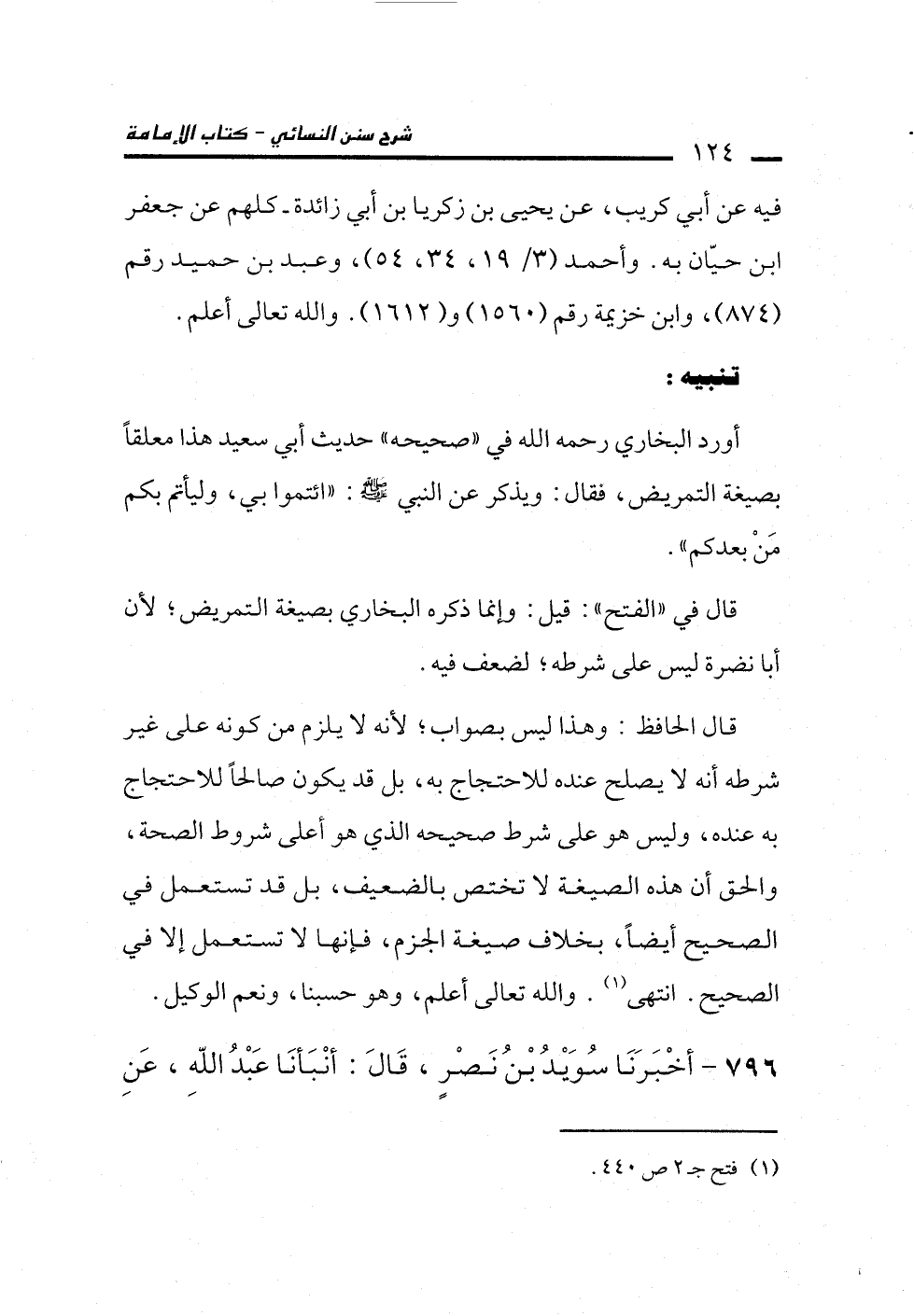 796 - أَخْبَرَنَا سُوَيْدُ بْنُ نَصْرٍ، قَالَ: أَنْبَأَنَا عَبْدُ اللَّهِ، عَنِ